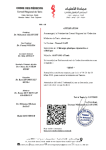 - Inscription à l’Ordre des Médecins de Tunis (N° 28345)