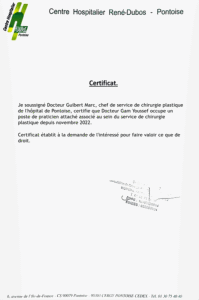 Le Dr Youssef Gam est un chirurgien plasticien certifié, spécialisé en chirurgie plastique réparatrice et esthétique enregistré à la CNOM sous le numéro 28345.